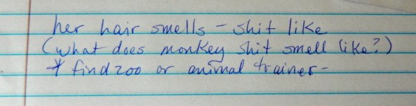 Bethany-“Well, it’s like John and I told you, the monkey is mad all the time. Everything we do upsets the monkey, I smell his shit all over the place.”