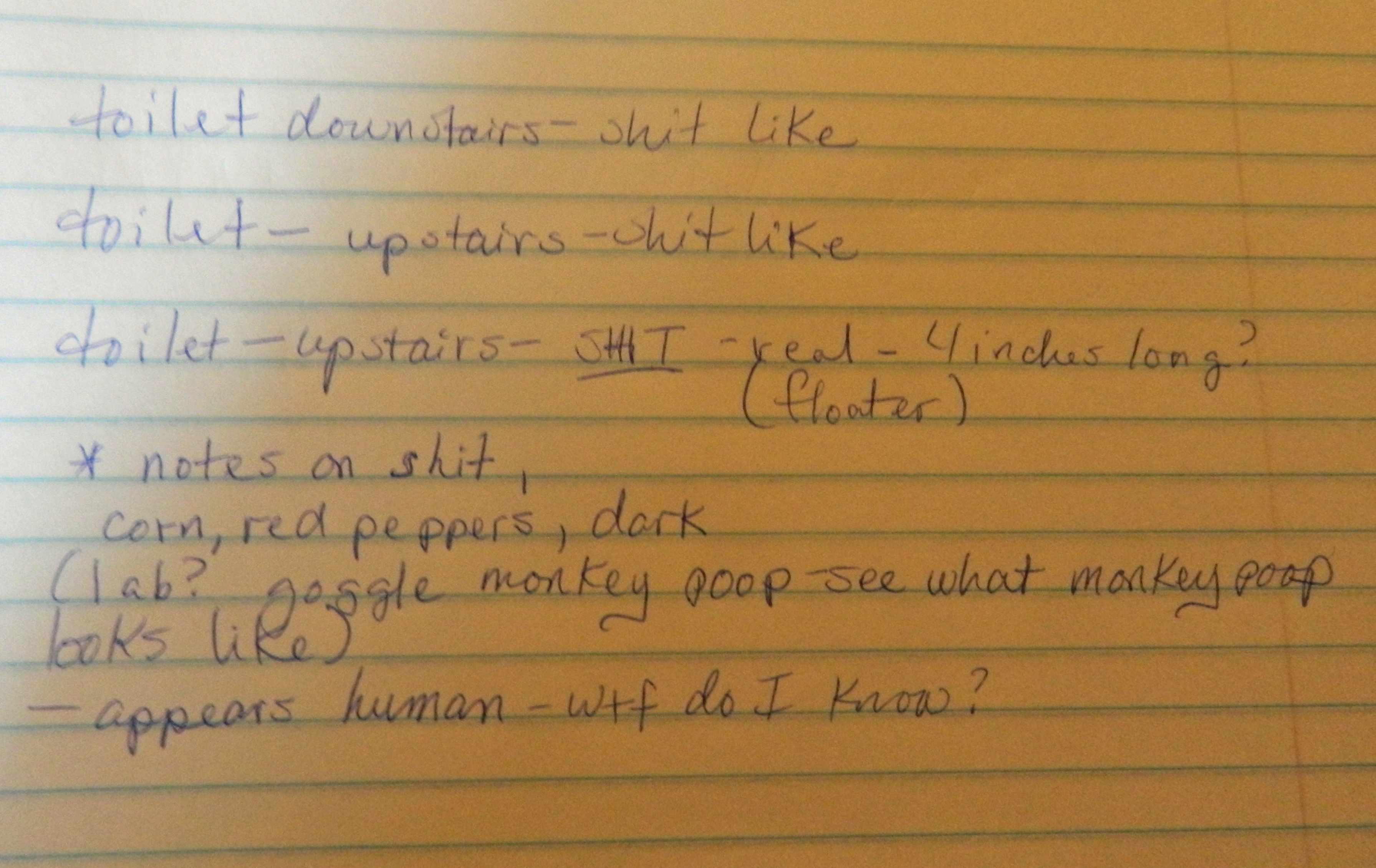 Kitty-“Well, Bethany, it looks human to me. I mean, I’m not sure what monkey poop looks like.”