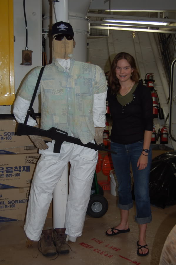 My daughter I am sure kept much of the “pirate” information away from me. However, she did admit at night the pirates, in small fast boats, like to run near the ship to “test” if it was well defended or not. The scientists built these dummies, in the hopes of making the ship seem better defended.
