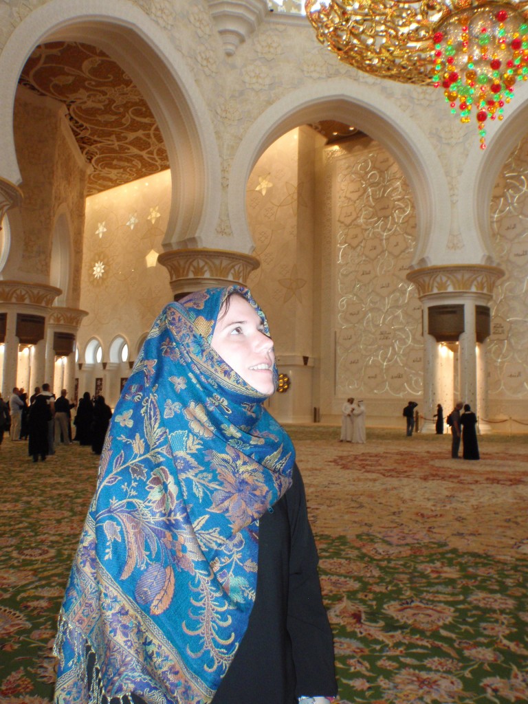 You can’t see much of what she looks like as she’s rather covered up in the photographs. Yes she does speak Arabic, and has a deep love for travelling in the Middle East. Her graduate work involved living in Oman for long periods of time.