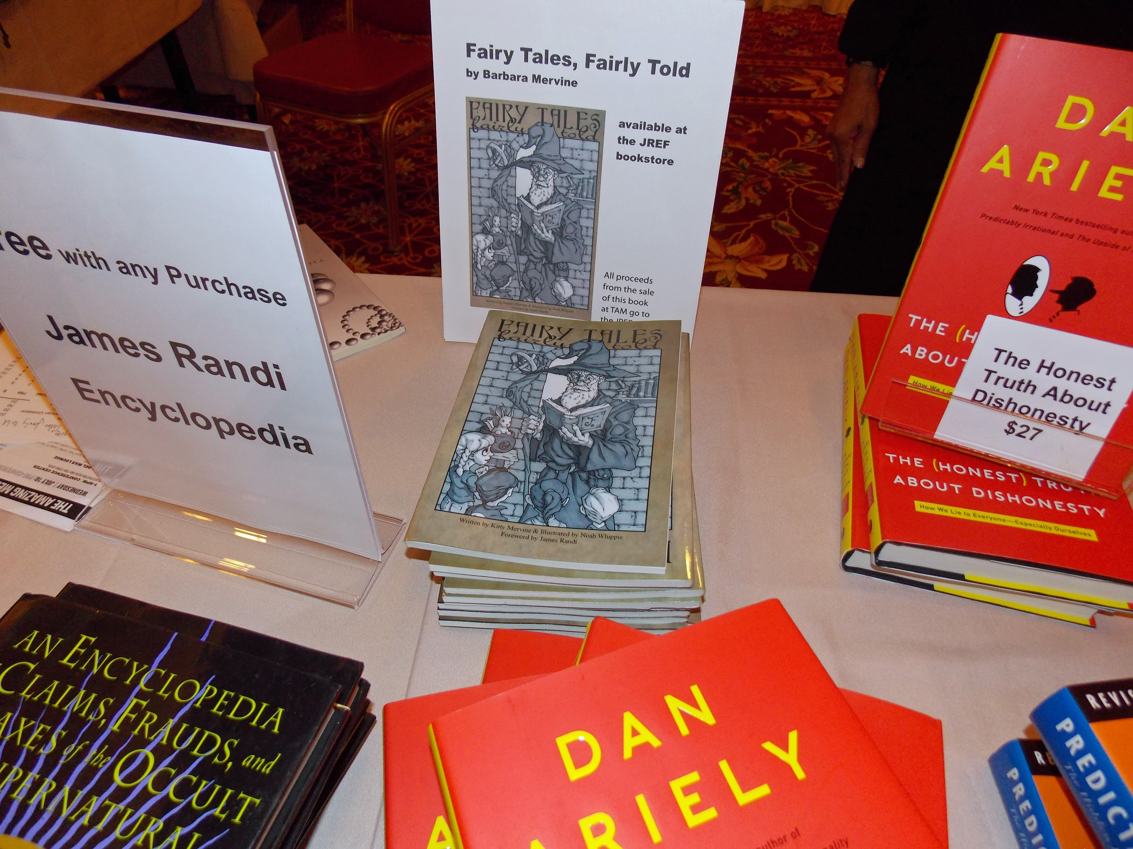 I did not meet, but did enjoy hearing, Dan Ariely. His talk on cheating (we are all small cheaters) inspired me to buy his book. My bag came back filled with books, including the newest from Daniel Loxton and Donald Protero “Abominable Science!” It’s a really fun book about MONSTERS! I never have to worry about finding something to read for months after TAM. (Did I mention my book “Fairy Tales Fairly Told” sold out? Yes I did. The lovely part is the woman selling books read my book, it is for children, and she was telling people they could find my book on Amazon after it sold out. She was my biggest supporter after Randi!)
