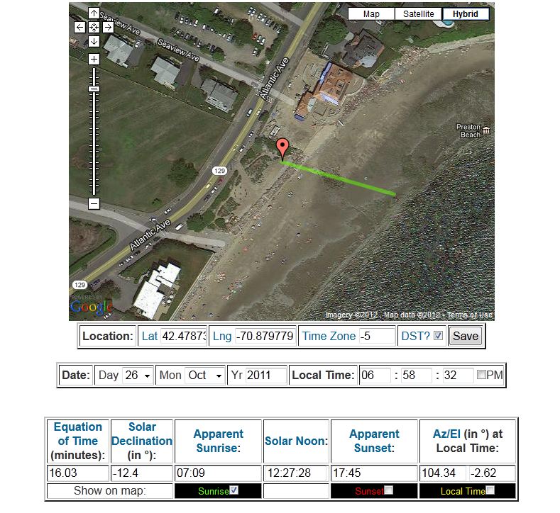 Image 5: Sunrise Calculation and Direction (from NOAA)