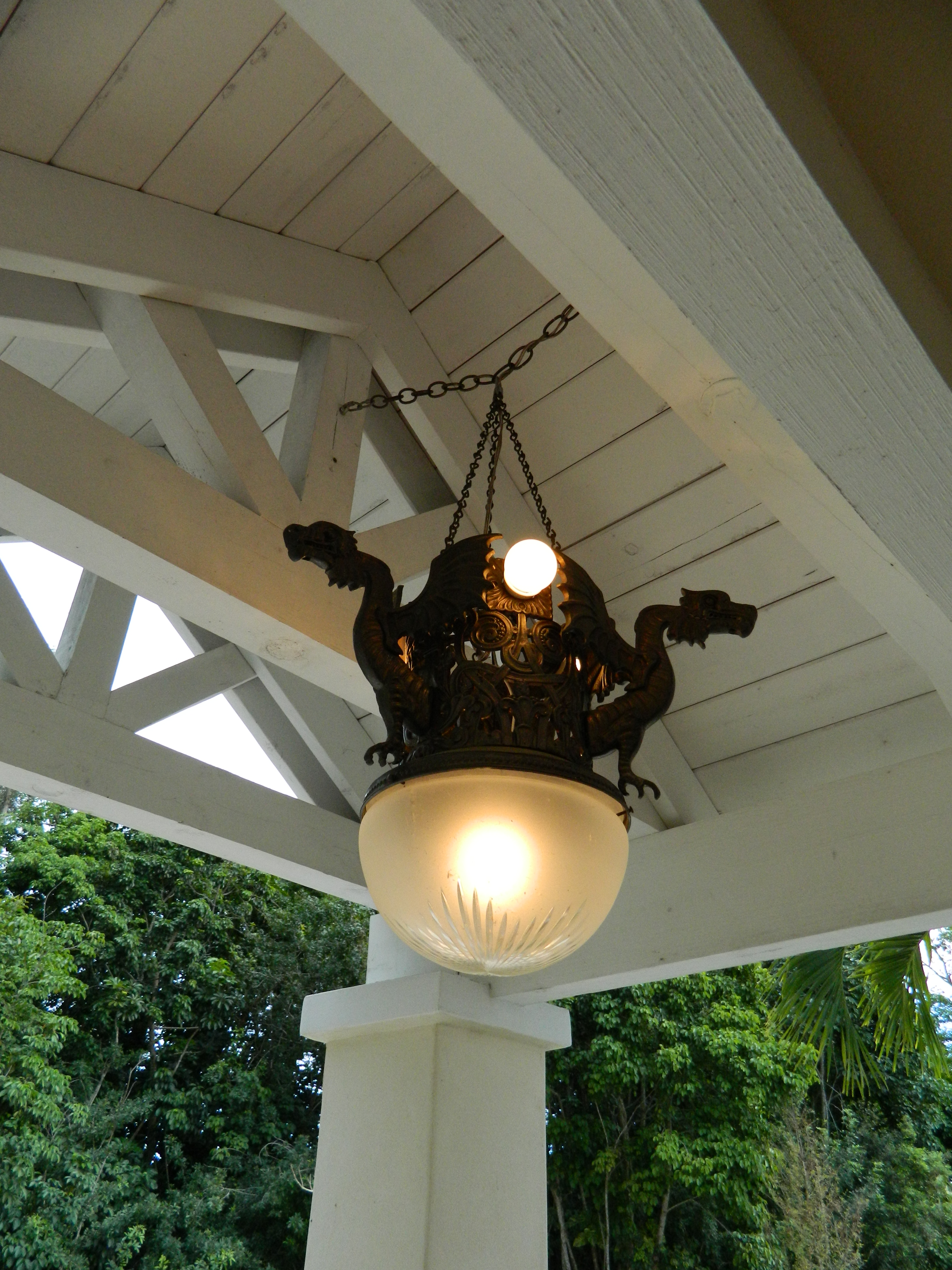 This lamp hangs outside the front door where my favorite skeptic lives. Can you guess the owner of this lamp?