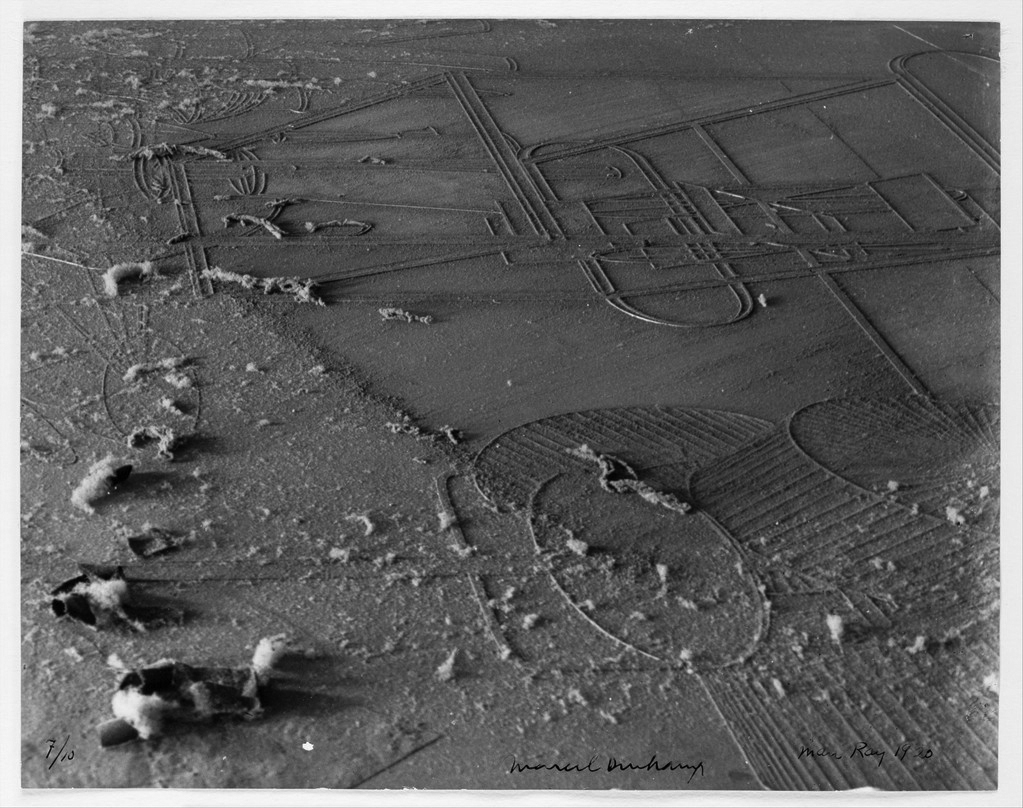 Part two: This photograph is a work of art, by Man Ray, of a work of art by the messy artist. This work was so covered in dust, as he took his time finishing it, that the mess itself became art. So both the piece and the photograph are considered genius by art historians today. If not for dust….