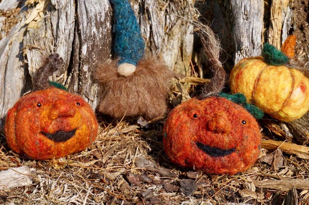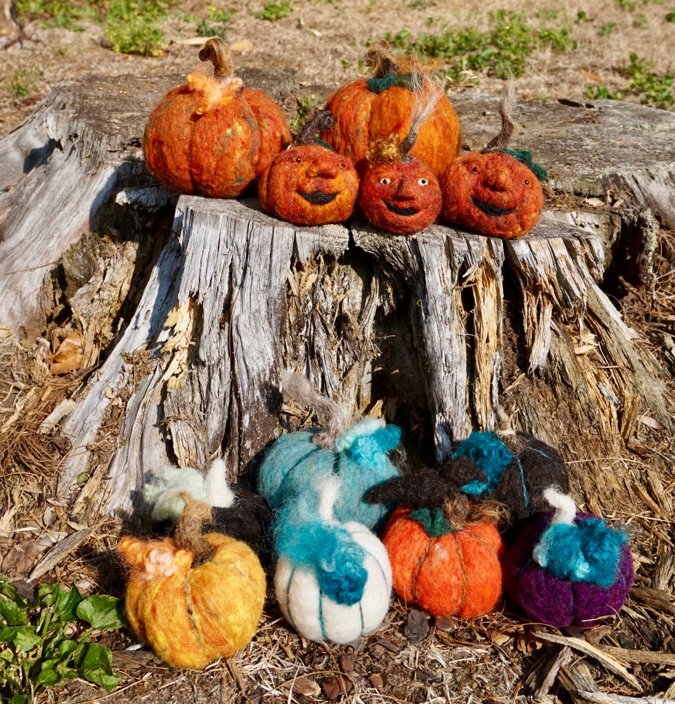 Once I had made some different colors, I was “I wonder what else I could do?” I am certain there are wool felting artists around the world doing this. I have to credit Michaels which has pumpkins with faces you can purchase.