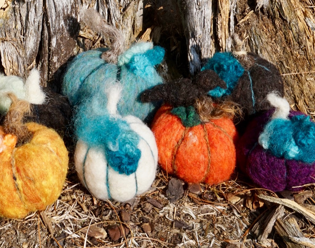I applaud you for making all of those pumpkins. I would have just wet felted them! heh!