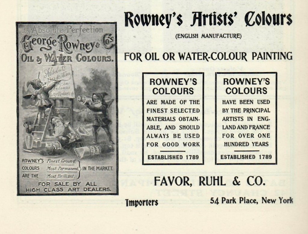 It appears to have been from out of Boston, and well over 100 years old. The ads are targeted for artists and the well to do.