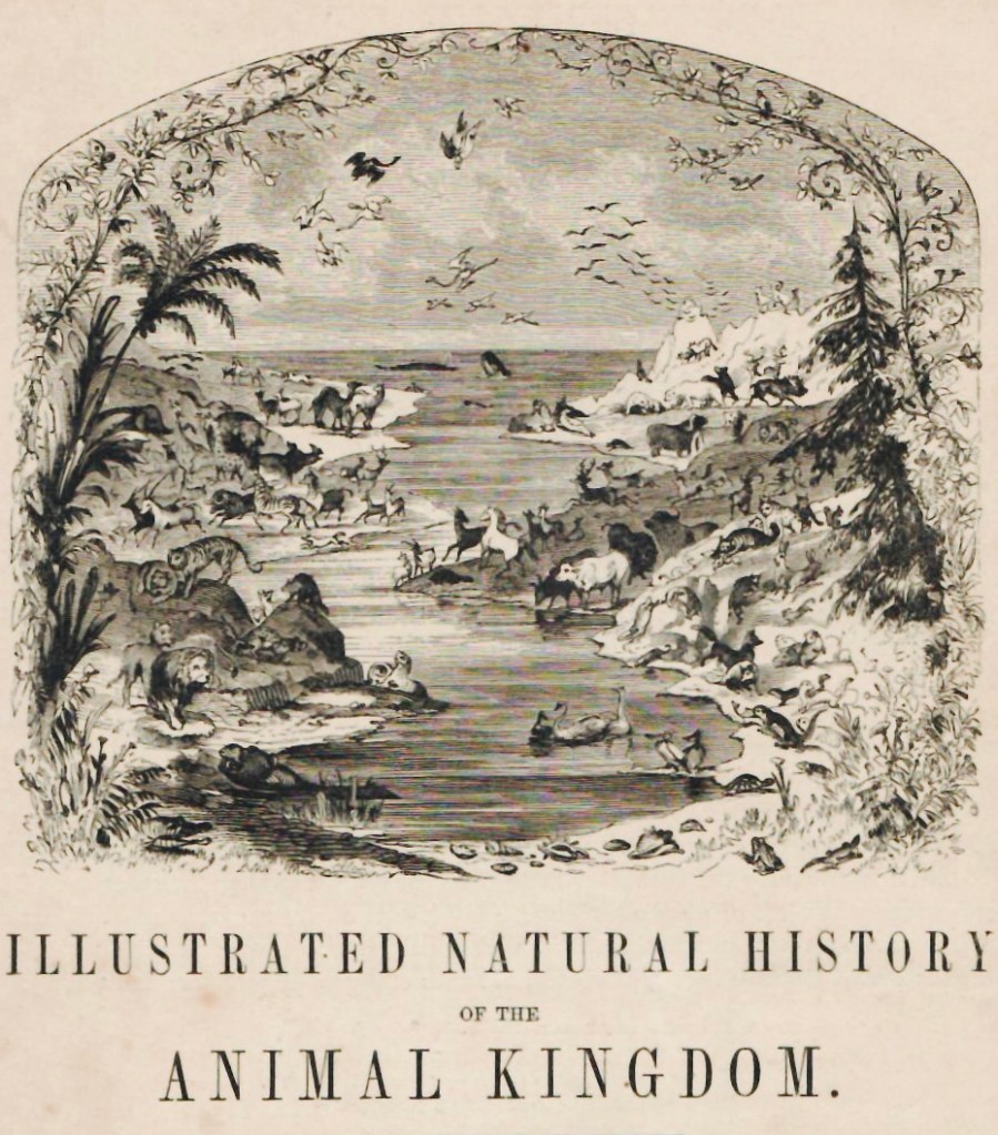 I want everyone to relax as I am scanning the illustrations from this 1863 book. Even I can’t bring myself to cut it up. Yet. This encyclopedia of biology is fabulous, not even a whiff of Darwin in it! The illustrations are adorable and also terrifying. There are a lot of animals killing each other in some illustrations.